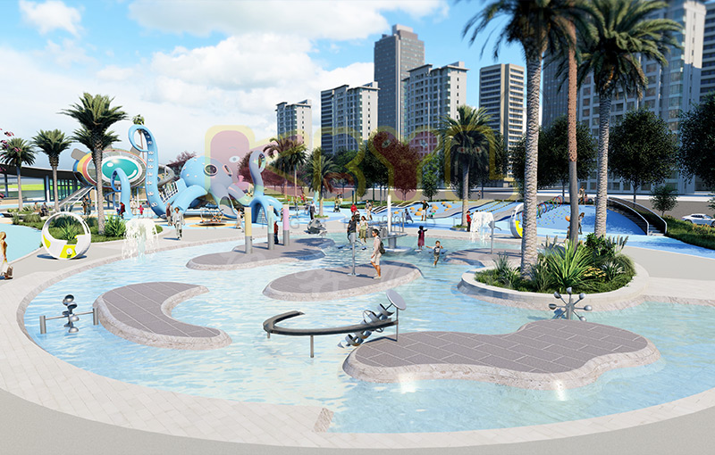 樂(lè)園附有一條蜿蜒的小溪,孩子、成年人和老年人可在這欣賞水景。這條小溪沿線(xiàn)有許多密集的長(zhǎng)凳和科普類(lèi)型的游樂(lè)設(shè)施,如阿基米德取水器、壓水槍、互動(dòng)水渠等,朝向動(dòng)線(xiàn)步行空間,還種植樹(shù)木提供陰涼...